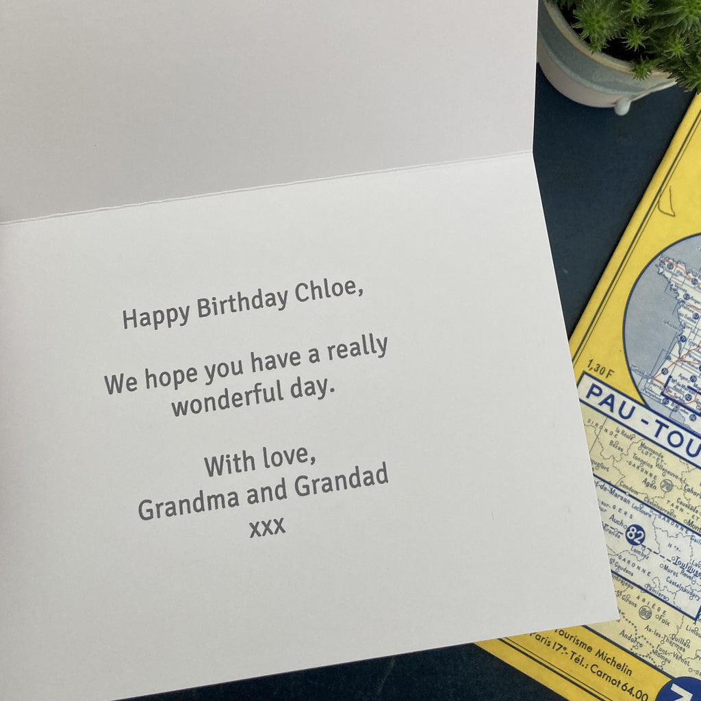 Delivered to you or direct to your recipient, with a vibrant blue envelope and protective envelope to keep it safe on the way.