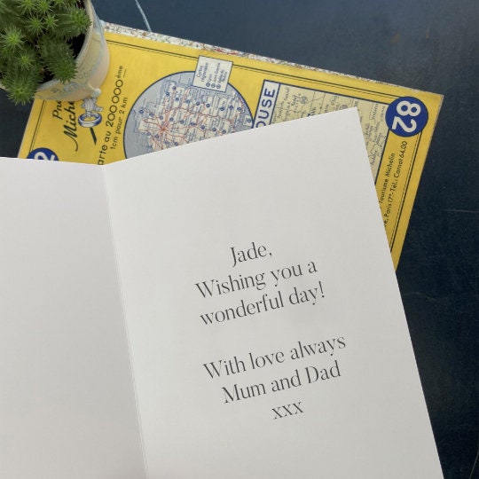 All cards are printed to order. Delivered to you or direct to your recipient, with a vibrant blue envelope and protective board envelope to keep it safe on the way.