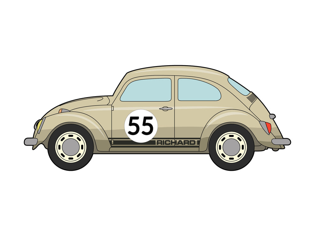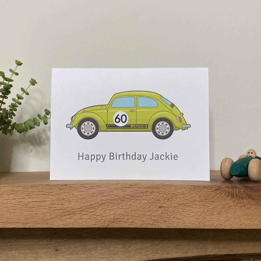 Create a unique personalised card for your favourite VW Beetle fan, personalised with their name and age. Add a personalised birthday message to the front of your card. An accurately drawn VW Beetle printed onto a bright white card.